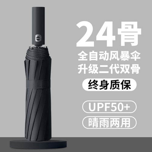 Black--extra large size 24 ribs [fully automatic umbrella resistant to strong winds]
